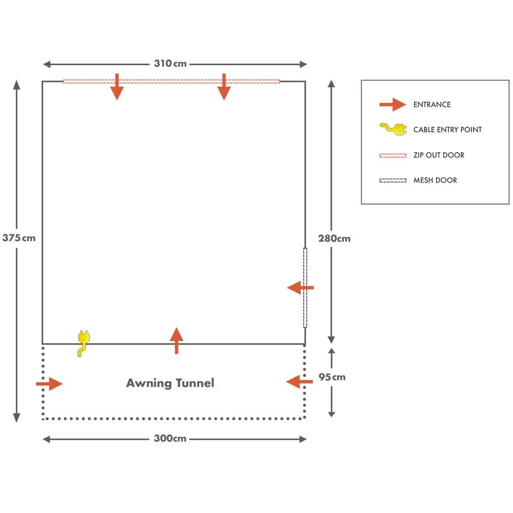 The AirTek Kamper Pro 1 includes twin J-Doors on the connection tunnel, ensuring easy accessibility from both sides of the awning and minimizing the chance of muddy footprints inside.