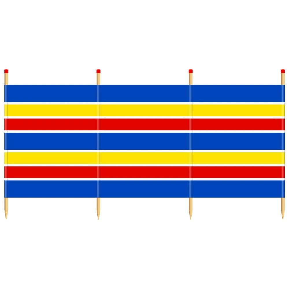 The Yello 4 Pole Traditional Windbreak with a traditional design windbreak allows you to enjoy your trip to the beach, camping trip or have a picnic while being sheltered from the wind while you relax and take in the sun. The Yello windbreaks are the perfect beach shelter accessory to protect you from the wind, sun and sand whilst offering plenty of privacy. Features and specifications: Compact size for easy transportation and storage This multi-coloured windbreak offers plenty of privacy Protects you from the wind, sand and sun Dimensions: 120 x 224 cm Pack size: 120 x 8 x 5 cm Weight: 22 kg